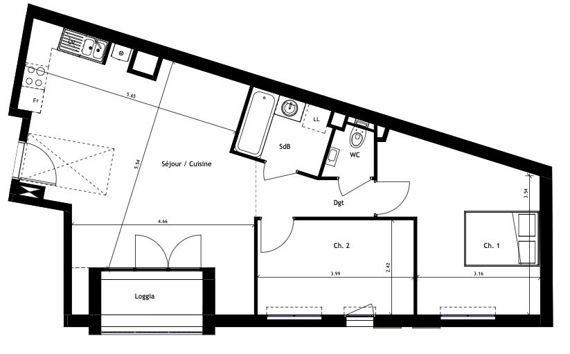 Deux T3 de 63,74 m² avec loggia